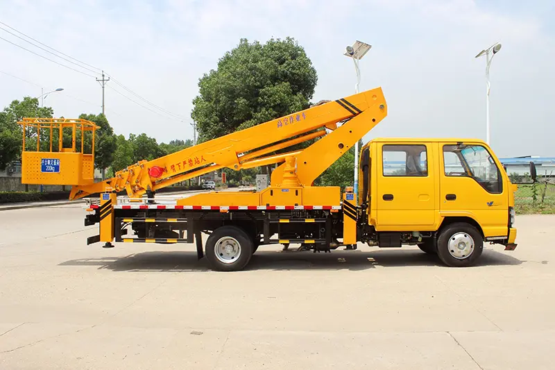 Safety is the core requirement of high-altitude operation equipment. Isuzu 15-21m Telescopic Boom Aerial Work Truck strictly controls the safety configuration at all levels to provide comprehensive protection for operators. The equipment is equipped with four hydraulic cylinder adjustable outriggers with two-way hydraulic locks, which effectively prevent accidental retraction of the outriggers and ensure the stability of the equipment during high-altitude operations; the outriggers are manually operated and can be controlled separately, with precise operation, further improving operation safety. At the same time, the overall design of the equipment complies with Chinese high-altitude operation equipment safety standards, produced by professional factories, and the supplier controls the quality throughout the process. Wholesale purchasers can enjoy perfect quality after-sales guarantee, so that purchasers have no worries, and it is widely used in power, chemical, shipbuilding and other industries with high safety requirements.