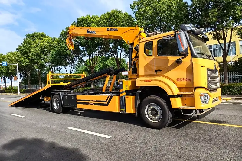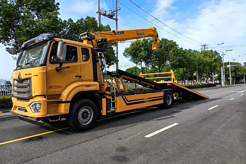 The Sinotruk Howo 4*2 One Drag Two Wrecker Truck With 8T Crane is a multi-functional heavy-duty road rescue special vehicle integrating fault vehicle towing, lifting and transfer, designed for highway rescue, urban traffic management, engineering rescue and large vehicle fault handling scenarios. Different from ordinary single-function wreckers, this model combines a 10-ton load-bearing flatbed, 8-ton telescopic tow arm and 8-ton XCMG straight arm crane, realizing dual functions of one drag two towing and on-site lifting, greatly improving rescue efficiency and scene adaptability. It is a core equipment for road rescue teams, traffic law enforcement departments and automobile repair enterprises, with stable performance and strong load capacity to cope with various complex rescue tasks.