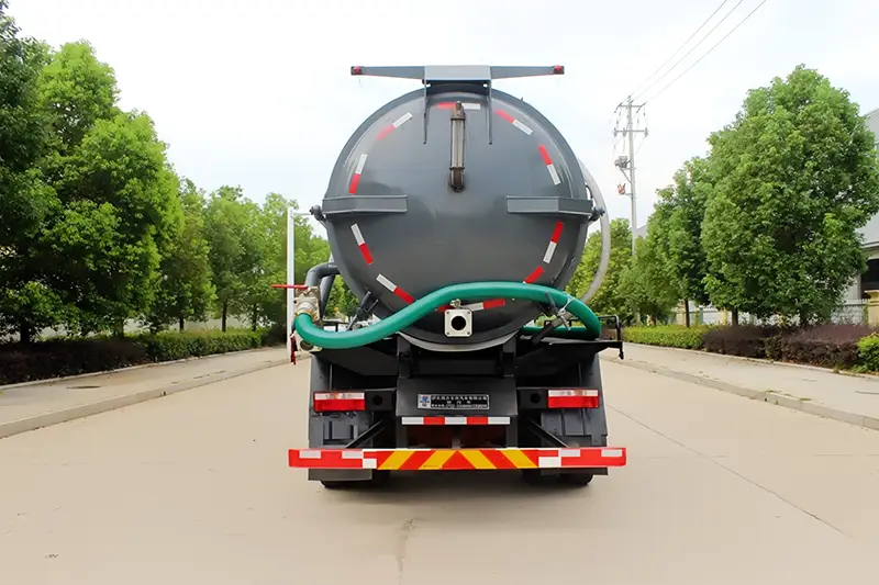 ③In addition, the Sewage Suction Truck is standardized with hydraulic lifting system, sewage circulation system and multi-point safety protection system. The hydraulic lifting system can easily tilt the tank to discharge materials, which is convenient and labor-saving; the sewage circulation system can realize self-cleaning of the tank, reducing maintenance workload; the safety protection system includes emergency stop button, pressure relief valve and other components, ensuring the safety of operators and equipment during operation.